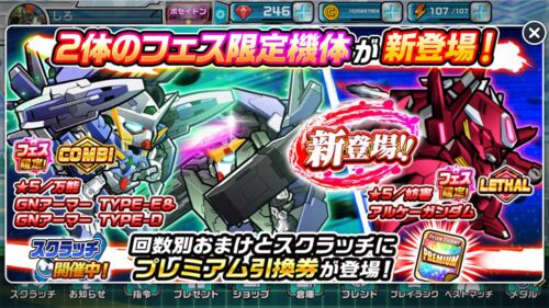 6.1-6.5 SWGF ☆5確率3.5% ピックアップ各1% ☆4確率8.5% 6.5-6.15 ステップアップガシャ 6.8-6.15 映画公開記念!WGF ☆5確率3% ピックアップ2% ☆4確率9% 6.10-6.15 セレクトガシャフェスティバル ☆5確率3.5% ピックアップ各1% ☆4確率8.5% 6.15-6.19 ガンダム…