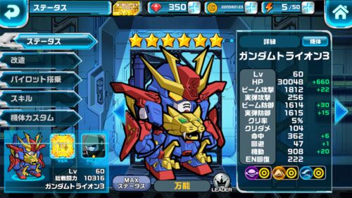 ver14ステータス スキルサイクル スキル 必殺技 超咆剣ハイパーミノフスキー・トライザン ACE必殺技 ハイ・メガキャノン&ダブルキャノネード&ライガーグレア 合体 アームドブースター ブーメランスタッガー ハイ・メガキャノン 雑感 必殺技とACE必殺技どち…