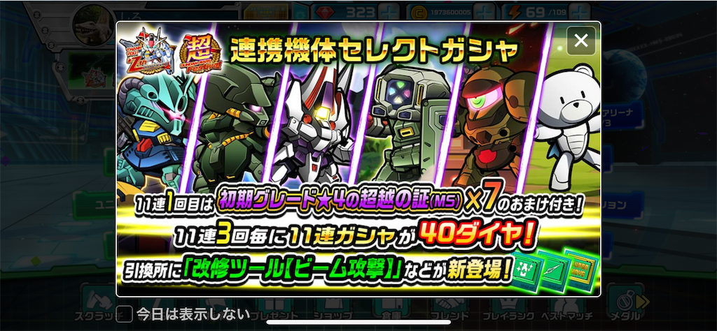 8.10-8.16 7周年記念!超ガンダムウォーズ祭!連携機体セレクトガシャ