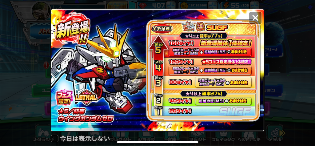 8.23-8.31 7周年記念!超ガンダムウォーズ祭!所持済機体確率UP!WGF-リーサル-