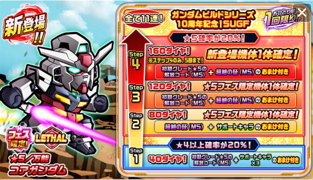 ステップ1 ☆5確率2% ☆4確率18%